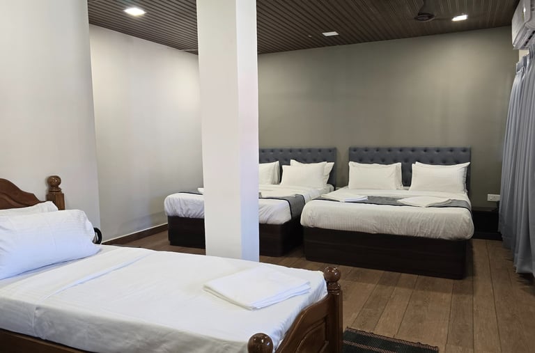 Enjoy easy access from Margao Railway Station, Dabolim Airport, and major roadways, making your arrival smooth and stress-free. Our spacious rooms feature multiple beds, intercom, free Wi-Fi, and cable TV with a wide selection of entertainment—perfect for relaxing after a day in the sun.